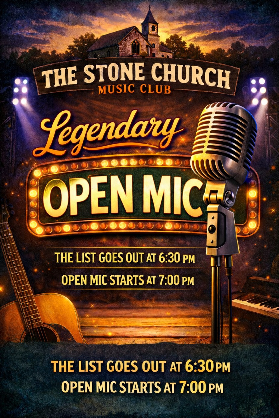 Every week, The Stone Church Music Club turns into Newmarket’s most vibrant creative playground — where seasoned pros, first-timers, songwriters, poets, comics, and wildcards all share one stage.